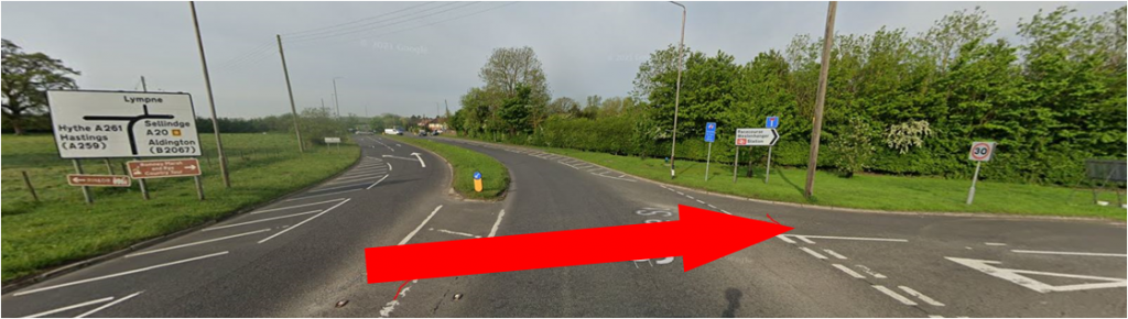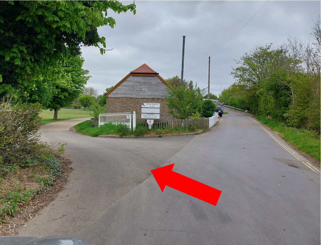 Continue for half a mile until you see the sign (left hand side) for Westenhanger Castle: (if you go over the bridge, you have gone too far)